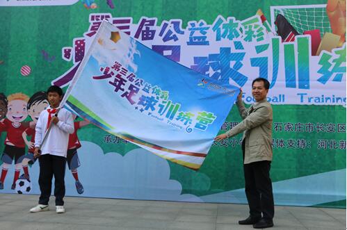 10月11日,由河北省体彩中心主办的“第三届公益体彩少年足球训练营”开营仪式在石家庄盛世长安小学举行,河北省体彩中心主任廉向军、石家庄市长安区教育局相关负责人等出席开营仪式。